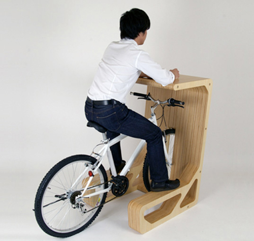 自転車ごとデスクにピットイン!自転車に乗ったまま仕事ができる斬新でナイスなデスク
